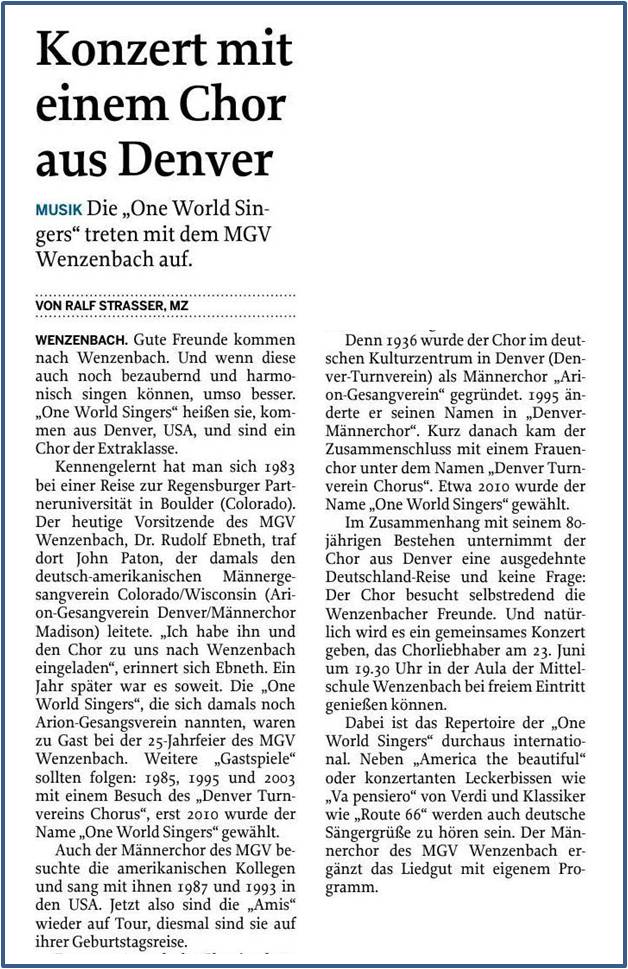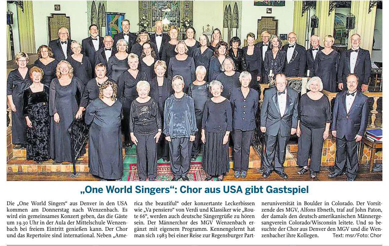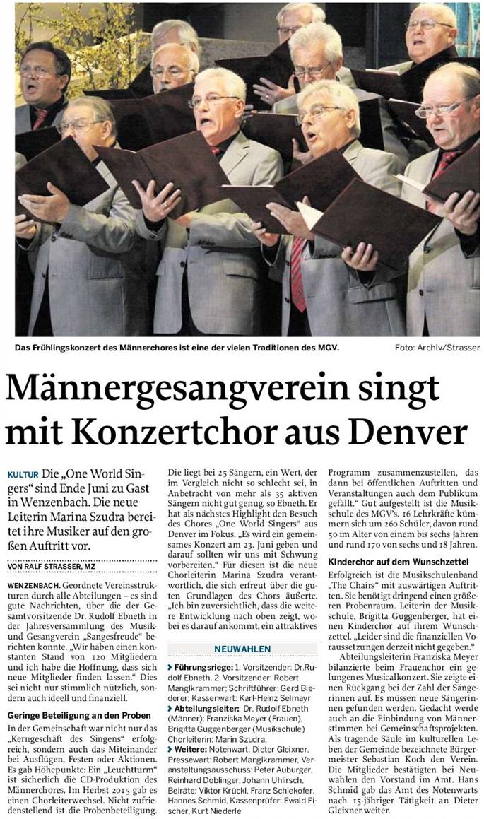 Sangesfreude Wenzenbach blickt auf 55 Jahre zurück